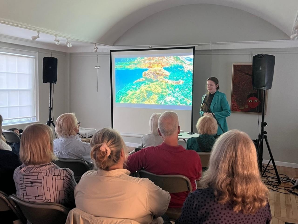 Also in September, 2020 Flag Carrier Callie Veelenturf presented “Sea Turtle Conservation and the Rights of Nature” at the Marblehead Arts Association in Marblehead, Massachusetts. Callie is a marine conservation biologist, National Geographic Explorer, and Scientist with the United Nations Harmony with Nature Programme. Through The Leatherback Project, she shared how sea turtle science and the Rights of Nature framework are creating conservation impact across three countries in Latin America.
